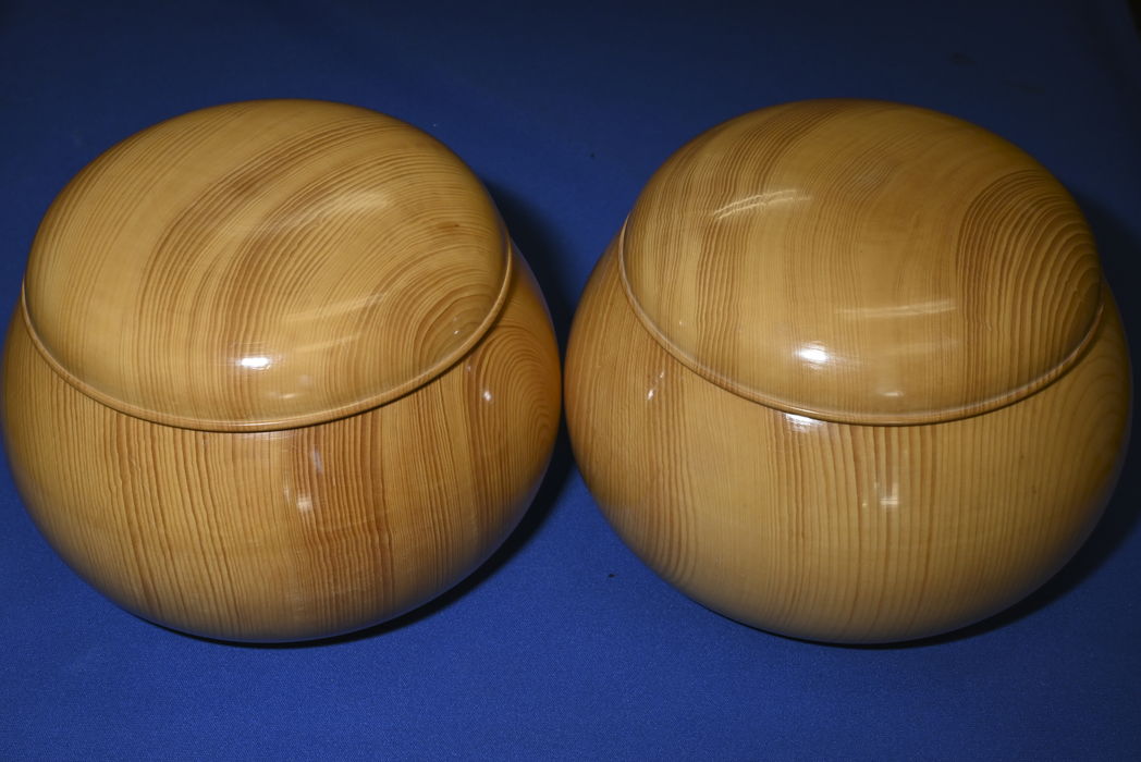 委託販売 本榧(日本産)碁盤 天地柾 6寸2分 サイズ454x422x187ミリ本因坊秀芳揮毫入り碁石40号 (白180粒、黒181粒)本榧碁笥付き ほぼ未使用