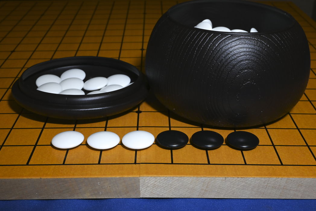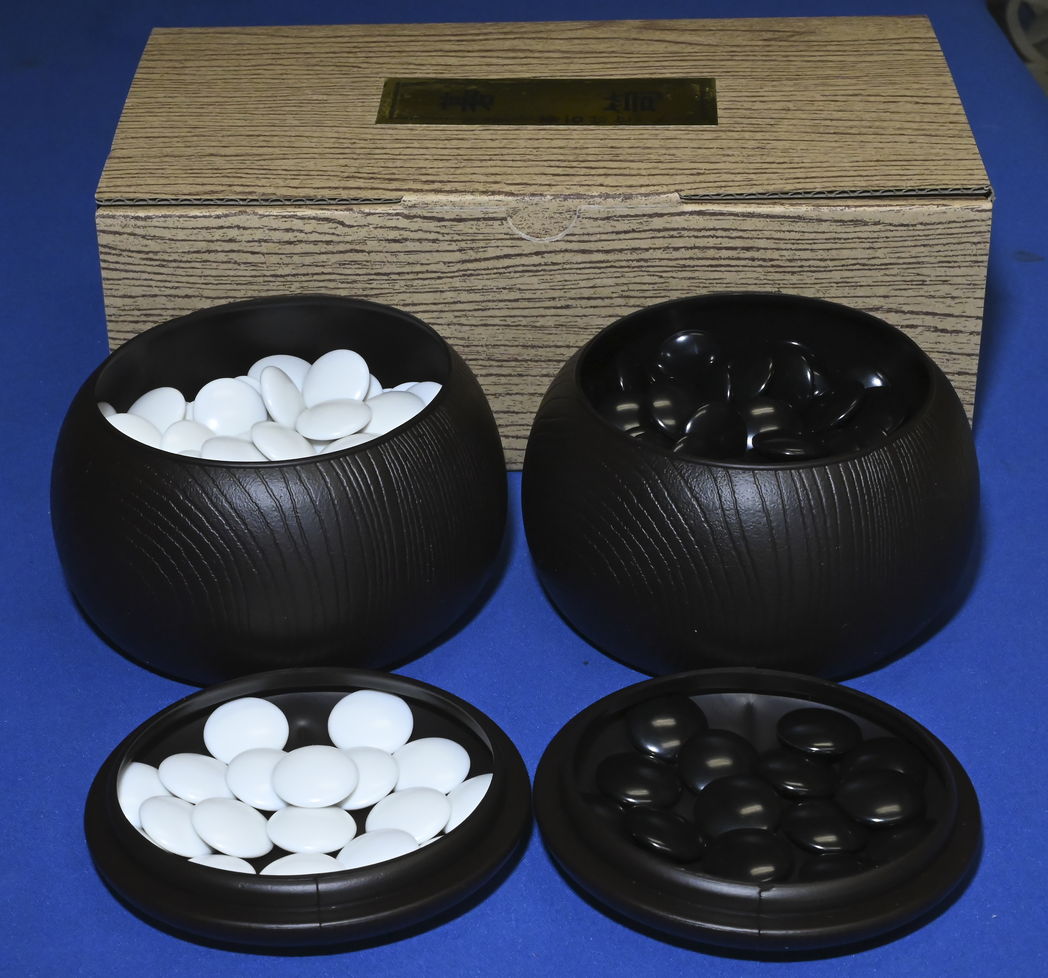 プラスチック碁石 厚み約7ミリ 直径約22.0ミリ(黒石) 約21.7ミリ(白石) 簡易碁笥付き No.1 No.2 No.3折碁盤は商品に含まず