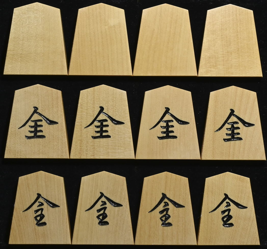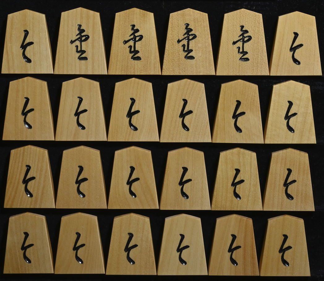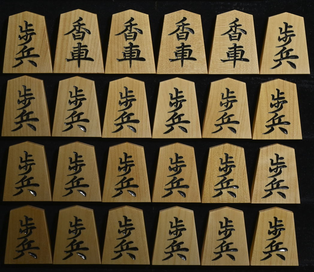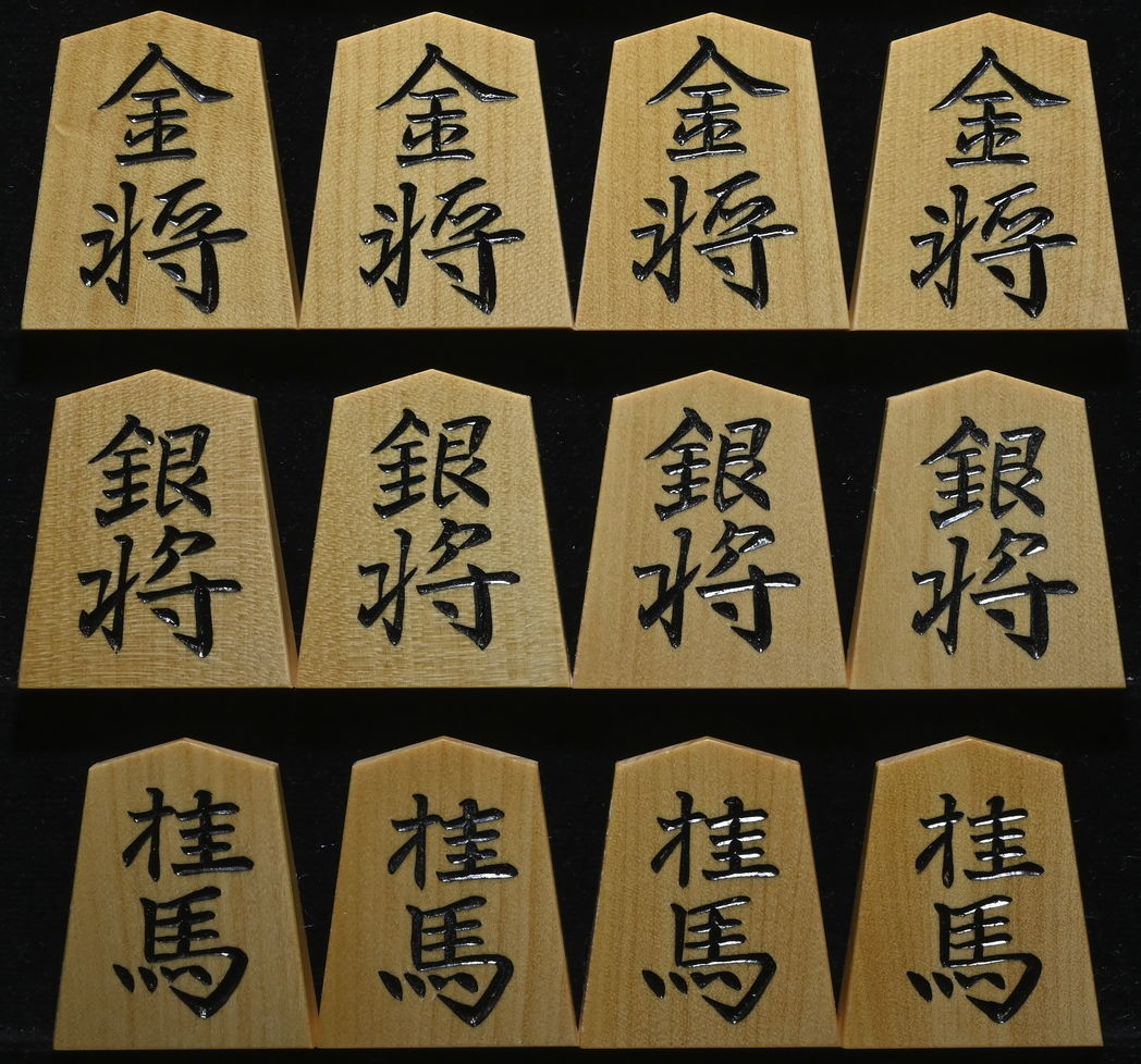 熟練の職人により一枚一枚 力強く手彫りされ手彫りが全盛期の頃の彫駒の味を代々伝える駒師こだわりの将棋駒。
