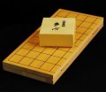 新桂(アガチス)5号折将棋盤とプラスチック将棋駒 歩心のセット 将棋盤サイズ330x300x13ミリ No.1 No.2 No.3 駒の裏の文字が黒と朱があります。お選びください。 No.4 一番薄くて軽い5号のセット No.5 プラスチックの蝶番です。見た目は弱そうですが、金属製と同じくらいの耐久性があります。厚みが薄いので金属製より平らに開きます。