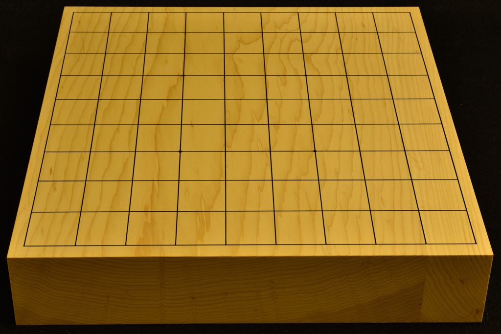 品質には老舗の自信があります。 本榧(日本産) 板目 2枚接合 サイズ369x339x63ミリ本漆太刀目盛 №1 №2 №3 №4