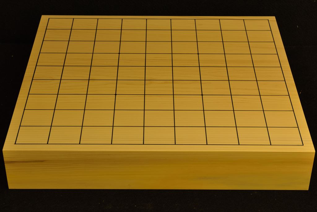 品質には老舗の自信があります。 本榧(日本・日向産) 板目一枚板 サイズ370x340x61ミリ本漆太刀目盛画像No.5の側面にシミ着色があります。画像の現品をお届けします。 №1 №2 №3 №4 №5