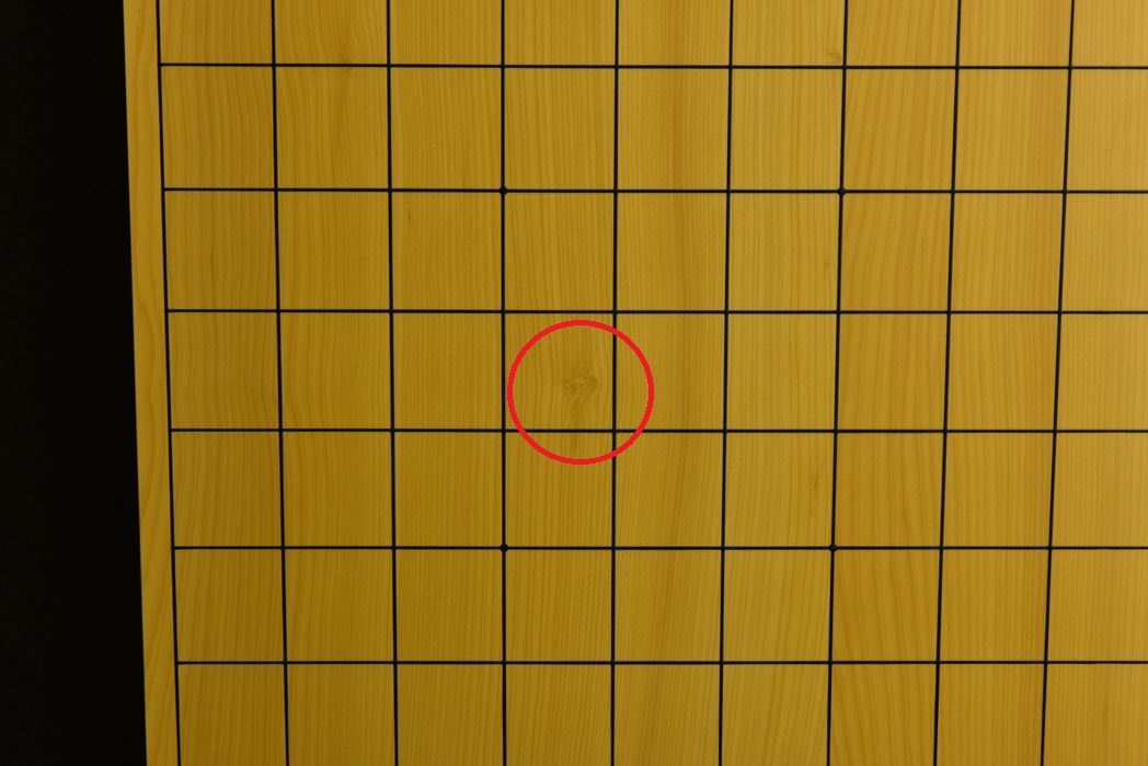 品質には老舗の自信があります。 本榧(日本産) 二枚接合 サイズ370x339x60ミリ 本漆太刀目盛画像の現品をお届けします。 №1 №2 №3 №4赤丸の中に木目のユレがあります。 №5