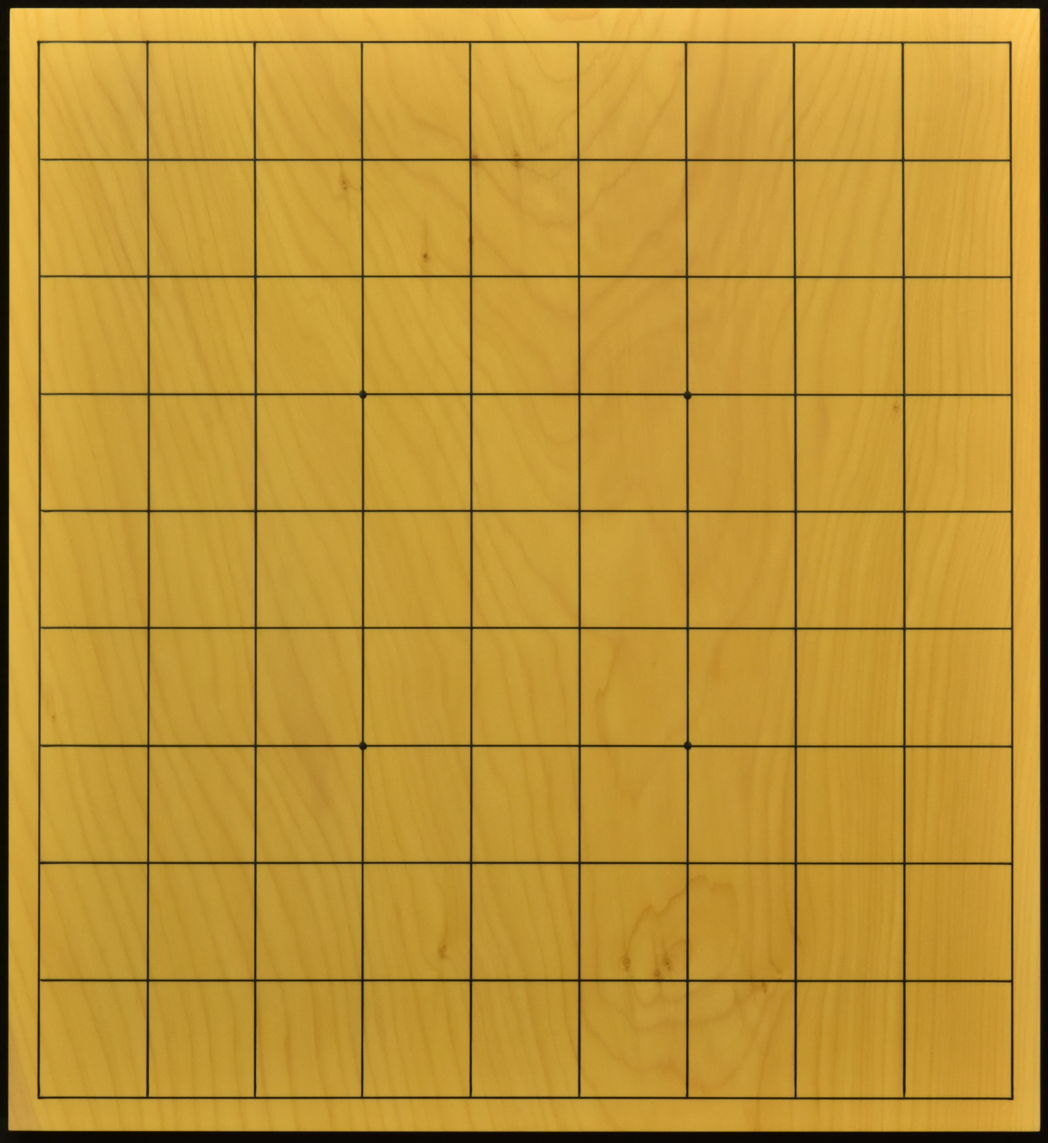 品質には老舗の自信があります。 本榧(日本産)一枚板 サイズ367x337x40ミリ 本漆太刀目盛 №1 №2 №3 №4