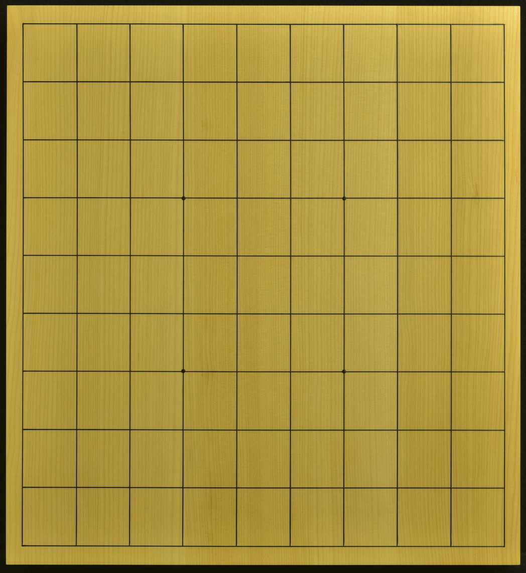 品質には老舗の自信があります。 本榧(日本産)柾目3枚接合 サイズ369x339x60ミリ 本漆太刀目盛 №1 №2 №3 №4