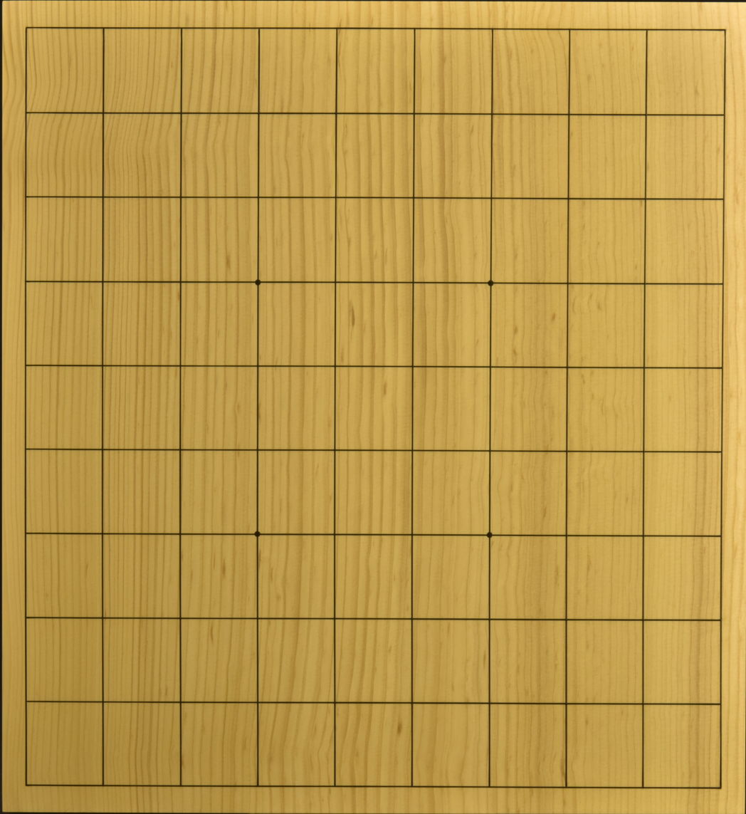 品質には老舗の自信があります。 本榧(日本産) 柾目一枚板 サイズ370x340x63ミリ本漆太刀目盛 №1 №2 №3 №4